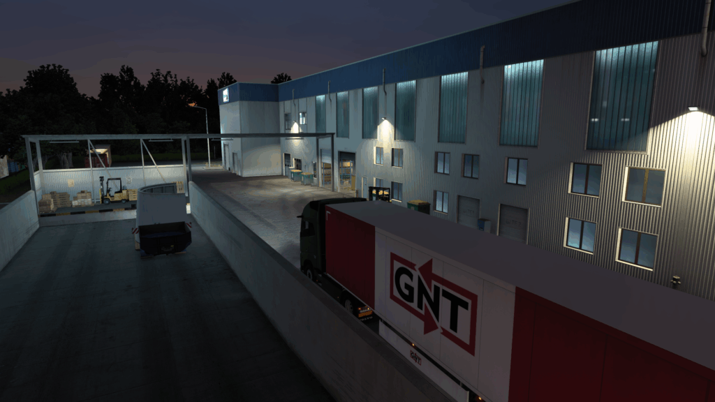 W-10 startet auf dem Betriebshof von GNT Uppsala. Zwischen Lagerhallen, Beton und skandinavisch nüchterner Industriearchitektur wird der Auflieger mit Strohballen beladen. Die Luft ist kalt, die Beleuchtung eher funktional als gemütlich – kurz gesagt: perfekte Rahmenbedingungen, um eine lange Rücktour Richtung Deutschland anzuschieben.