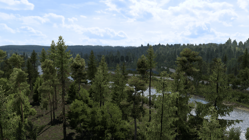 Ruhige Etappe am Lagan: Zwischen dichten Wäldern läuft der Zug mit Strohballen gleichmäßig nach Süden – Mittelschweden im Langstreckenmodus.