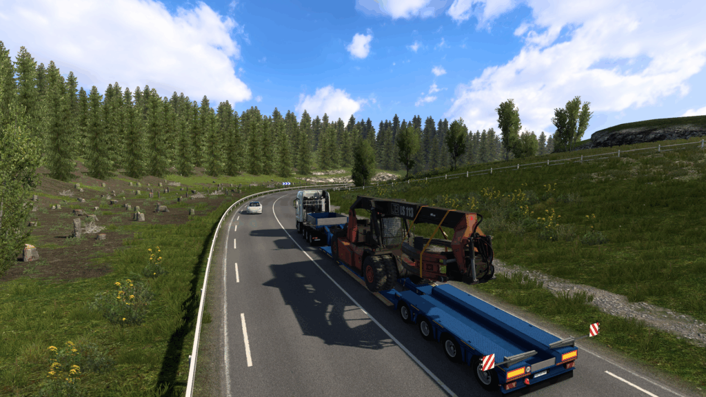 Je näher die spanische Grenze rückt, desto länger werden die Steigungen und Tunnelpassagen. Die Kombination aus Vorschäden und Gewicht sorgt dafür, dass W-12 spürbar vorsichtiger gefahren wird: früher runter vom Gas, mehr Sicherheitsabstand, kein hektisches Überholen. Der Auftrag wandelt sich endgültig zur reinen Transitmission – die Landschaft liefert Kulisse, aber nicht das Programm.