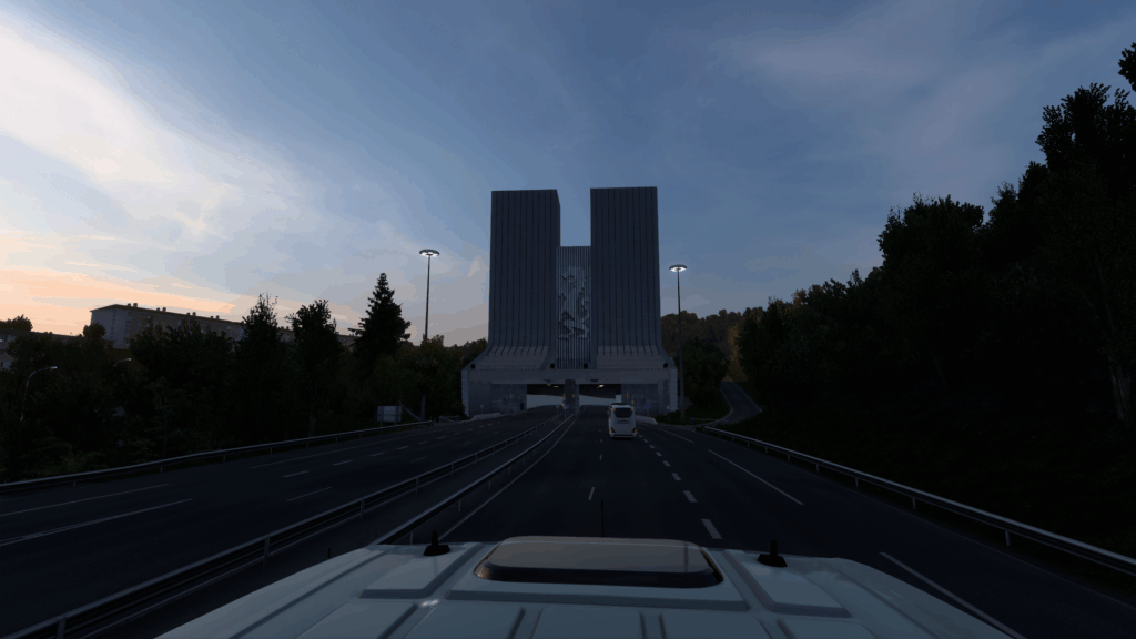 Hinter Nürnberg setzt die Route auf den klassischen Südwest-Korridor: Autobahnen mit wechselnden Tempolimits, frühe Mautstationen und die ersten Grenzübertritte. Die Fracht ist schwer, aber kalkulierbar – das Ziel ist eine saubere, defensive Fahrweise ohne Experimente. Statt Stadtrunden oder Fotoumwegen dominiert Transitlogik: rechtzeitig einreihen, vorbereitet abbremsen, Fahrzeit im grünen Bereich halten.